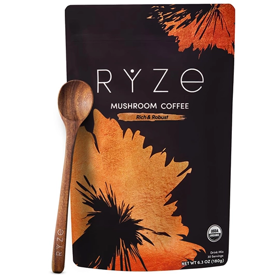 RYZE SUPERFOODS Mushroom Coffee USDA Organic with 6 Adaptogenic Mushrooms and MCT Oil, USA Grown Instant Coffee for Better Energy, Focus, Digestion, Immunity with Lions Mane & Turkey Tail, 30 servings(6.35 (Pack of 1))