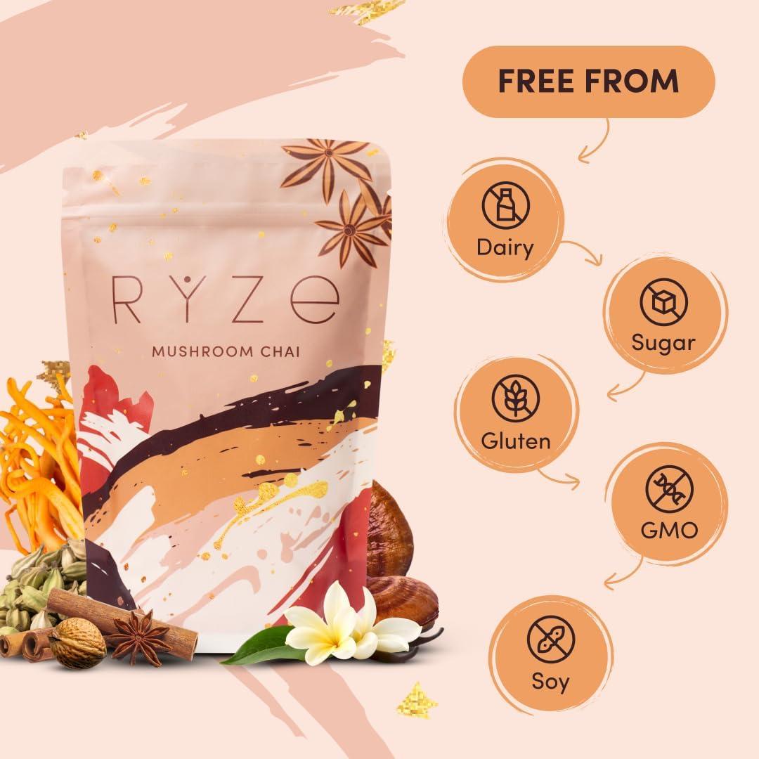 HEALTHY CHAI: Powered by 6 adaptogenic mushrooms and Ayurvedic Spices, RYZE Mushroom Chai gives you balanced energy, focus support, and immune support and even promote a healthy gut. If you like tea, you’ll LOVE this Chai